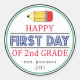 Redonda Feliz Primer Día Del Pegatina De Lápiz De Segundo