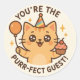 Diga gracias de la manera más apropiada con este adorable pegatina con el tema del gato "¡Eres el huésped perfecto!" - perfecto para fiestas de cumpleaños o regalos de agradecimiento. Un gatito personalizado sonriente con un gorra fiesta le agrega encanto y diversión a su celebración. ¡Ideal para los amantes del gato y de los animales de paja!