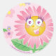 Redonda Flor antropomórfica rosa pegatina