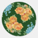 Redonda Flores azules de rosas amarillas en Pegatina verde