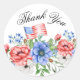 Este patriótico diseño floral rojo, blanco y azul incluye una bandera estadounidense y es perfecto para un verano, un boda del 4 de julio o cualquier otra fiesta patriótica estadounidense. El texto cursivo dice "Gracias".