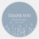 Este boda Gracias pegatina con flores y mariposas blancas dibujadas a mano sobre un polvoriento fondo azul es una gran elección para decorar tus favores en un boda boho al aire libre o en el patio trasero.