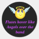 Este gran pegatina presenta un logo de angel smiley con el texto púrpura, 'Las flautas se abren como ángeles sobre la banda', genial para cualquier flautista que conozcas!