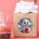 Un adorable gatito blanco con grandes ojos azules te te está mirando sosteniendo un corazón rojo en sus patas, junto con las palabras "¡Gracias!" Puedes usar este lindo pegatina por ejemplo en tus paquetes de regalo, o en tus sobres. El diseño ha sido creado con IA.