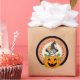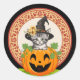 Redonda Gatito en un Pegatina de Calabaza Halloween