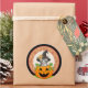 Un Adorable pegatina parcial de Halloween generado por IA representa a un gatito adorable vestido con el gorra de una bruja sentado en una calabaza sonriente, dentro de un círculo complicado. ¡Utilicen a estos pegatinas en favores partidarios, tarjetas y más! Disponible en dos tamaños diferentes.