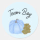 Muchacho pegatina de calabaza para mostrar que tu voto es por un niño para un fiesta revelador de sexo. Presenta calabazas dibujadas a mano y hojas sobre un fondo azul claro. Bien por la gente que quiere estar en "Team Boy".