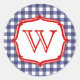 Redonda Gingham Azul Con Monograma Rojo Pegatina