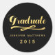 Pegatinas de la Ronda de Graduación Negra y Oro. Diseño de Elke Clarke © Visite nuestra tienda www.zazzle.com/monogramgallery* para más diseños y estilos. Una simple tipografía de Relieve metalizado dorado manuscrita escritura de texto superpuesto (efecto de foto impreso) con la palabra "Graduado". Añade tu nombre de graduado y año de graduación. Perfecto para sellos para sobres en sus anuncios de graduación o invitaciones a fiestas de graduación.