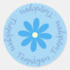Un pegatina de agradecimiento con una flor azul para usar en regalos, sobres o regalos hechos a mano.
