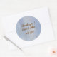 Pegatina minimalista con un fondo azul y pequeños círculos dorados. Gracias , nombres y pegatina de fechas - fácil de agregar su propio texto y detalles.