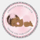 Envíe a este hermoso pegatina redondo con colores rosados y grises con una linda bebé afroamericana usando pañales rosados y pañales con la cabeza floral para agradecer a sus familiares o amigos por la celebración de la ducha de bebé. Puede personalizar el nombre o cambiar la redacción a su propio texto haciendo clic en la opción "PERSONALIZAR". Gracias por visitar mi tienda y espero que disfrutes del diseño de TheCreativeMill.
