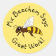 Una abeja de miel personalizado de rayas en un fondo amarillo. El texto dice "¡Mx Beechem dice gran trabajo!" y se puede cambiar por un nombre/mensaje personalizado. Ideal para profesores como recompensa para estudiantes.