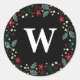 La tipografía caprichosa y los detalles de las flores de vacaciones, pinos y mistletoe hacen un sello para sobres/pegatina de temporada para sus saludos de vacaciones personalizados con su monograma.