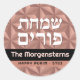 Redonda Happy Purim Rosa Gold Luxury Hebrew Round Pegatina