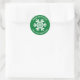 Un pegatina de copos de nieve verde y blanco con el saludo, hecho con amor. Personalízalo con tu apellido. Diversión para tus Navidades caseros o hechos a mano, dulces y regalos del vecino. Diseñado para ti por Blackberry Boulevard.