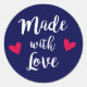 Redonda Hecho con amor pegatina de arte de corazones rojos
