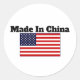Redonda Hecho en China Pegatina de EE.UU.