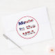 Pegatina redondo con "Hecho en Estados Unidos" en negrita letras de la bandera estadounidense. Frontera roja. Vea la correspondencia entre el pegatina vinílico cortado por personalizado, el confetti, la bolsa de favoritas, la etiqueta de favor, la etiqueta y el papel de envoltura. Ver toda la colección de Pegatinas Patriotic 40 en los INVITES | Sección Pegatinas y etiquetas.