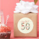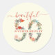 Pegatinas de la celebración de cumpleaños número 50 con el mensaje "Hermoso" en escritura moderna de caligrafía "a" entonces el nombre de la chica de cumpleaños en medio del número 50 (con letras florales).