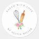 Horneado Con Amor Elegante Pegatina De Pasta De Flor Rosa. Elementos coincidentes disponibles