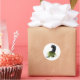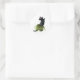 Un gato negro baila la hula en una falda de hierba sobre estos pegatinas divertidos.
