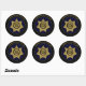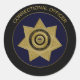 Pegatinas de la RIBA de oficiales correccionales - es un diseño de arte gráfico. La insignia se crea en plata (o oro) y negro con un pequeño toque de azul. Una estrella decorativa de siete (7) puntos de plata o oro forma la insignia. El texto que recorre la parte superior de la placa dice: DEPARTAMENTO DE CORRECCIONES. El texto que recorre la parte inferior dice: OFICIAL CORRECTIVO. Estas palabras se sientan en un sólido anillo azul. Más plata/oro decoran la placa. En el centro se encuentra un emblema de águila con estrellas de plata y oro. Un texto más pequeño en el centro dice: Sello del Estado. La insignia NO es específica del estado. Una llanta externa negra con texto en plata/oro recorriendo la parte superior que dice: OFICIAL CORRECTIVO. Este diseño de insignia viene en plata o oro con fondo negro o azul. Este fondo central es azul macizo con una insignia de oro, texto dorado decorativo y costillas de oro.