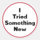 Intenté algo nuevo pegatina como recompensa para la gente que intentó algo o despertar interés en el marketing en un evento. Ideal para profesores o aulas, clases de nutrición o como iniciador de conversaciones en ferias y otros eventos.