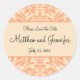 Envíe esto para guardar el pegatina de recordatorio de fecha junto con su invitación boda o guarde la tarjeta de fecha para ayudar a sus amigos a recordar su día de boda. Este pegatina recordatorio boda presenta un patrón de damasco de melocotón y crema. Puede personalizar fácilmente el texto desde la página de pedido de producto. Asegúrese de comprobar los demás productos de calidad de nuestro