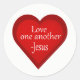 Un corazón gráfico de la artista/diseñadora Charmaine Paulson con el texto "Amen unos a otros-Jesús" en un pegatina.