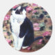 De una pintura al óleo original de Brenda Thour de un gato blanco y negro rodeado de flores rosas. Derechos de autor de Brenda Thour 2007.