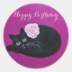 Diseño original de un gatito caprichoso........Un delicioso pegatina con un saludo de Cumpleaños Feliz, con un gatito todo acurrucado y cómodo y con una rosa rosa rosa. Un gran pegatina para terminar un paquete de regalo con.