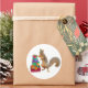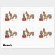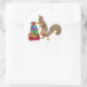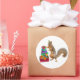 Una ardilla con un gorra fiesta se para con un montón de regalos. Este divertido pegatina de cumpleaños haría una divertida etiqueta de regalo.