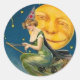 Redonda La luna pasada volando bruja - Pegatina de Hallowe