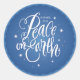 Las palabras Paz en la Tierra han sido escritas a mano y se han colocado en un fondo rico de textura con chispas. Este pegatina se coordina con la colección Sparkling Peace on Earth de Laura Bolter Design.