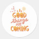 Redonda Las Cosas Buenas Están Llegando pegatina