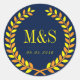 Redonda Laurel Wreath Boda Pegatina Marina Azul y Amarillo