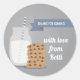 Un adorable Pegatina Modern Milk and Cookies Striped que es genial para una ducha de bebé. Los colores son gris, azul y blanco. Es un estilo moderno. El diseño incluye una pila de galletas de chocolate con una botella de leche. Pegatinas divertidos para poner bolsas de favores o sobres. ¡Personaliza para convertirlo en tu propio!