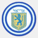 Pegatina redonda con una imagen de un León azul y amarillo del emblema de Judá con Ariel en hebreo en la parte superior, y bordes dobles azules amplios recortados en azul claro sobre blanco. Vea confección, etiqueta y papel de envoltura correspondiente. Ver toda la colección de Pegatinas de Hanukkah en la categoría CARDS & PEGATINAS en la sección HOLIDAYS.