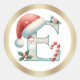 Redonda Letra monograma E, pegatina navideña Santa hat