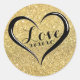 Redonda Love XOXO Heart Black Text on Gold Pegatina