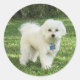 Este es un adorable pegatina de una mezcla maltesa de caniche.