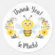 Un lindo abejorro negro y amarillo con flores con las palabras, Muchas gracias decora a este pegatina. Divertido por un favor de una fiesta para una ducha de bebé. Diseñado para ti por Blackberry Boulevard.