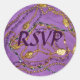 RSVP sobre cuentas de Mardi Gras con un fondo real morado.
