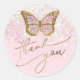 Redonda mariposa rosa gracias pegatina redondo clásico