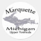 Un mapa de la Marqueta Michigan en la península superior en un pegatina.