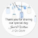 pegatina de Bonito alrededor de la boda hecho en blanco, con gráficos de tarros de albañil blancos y azules, colgando de una extremidad de árbol en flor azul. Personalice el texto para su boda.Hay disponibles productos de concordancia.