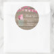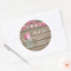 Pegatina redondo para la ducha de bebé con diseño de flores de tarro de albañil y fondo de madera.