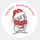 Redonda MERRY CHRISTMAS FUN OWL Pegatina redondo clásico