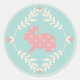Pink polka dot Conejo de Pascua con elegantes motivos de hoja sobre el fondo acuático pegatina de Pascua.
